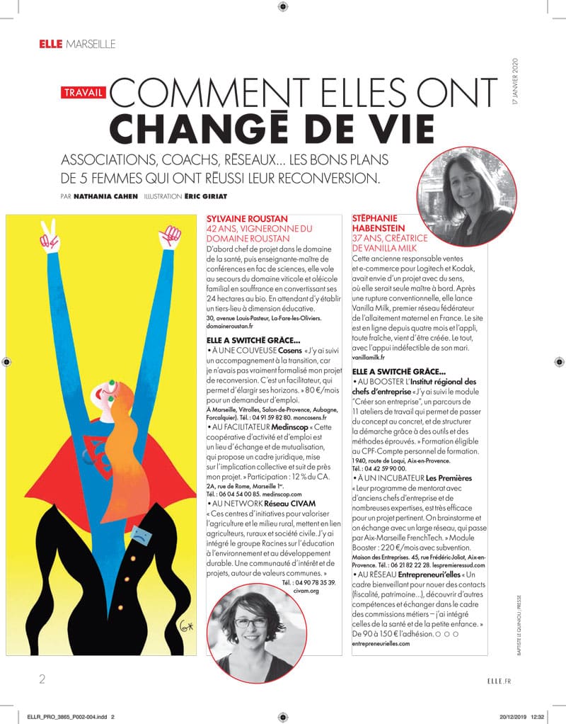 Le magazine Elle a bien compris ces phénomènes et consacre les 3 pages travail de son édition régionale du 17 janvier 2020, à ces femmes qui ont franchi le cap et aux solutions locales d’accompagnement et aides parcours.