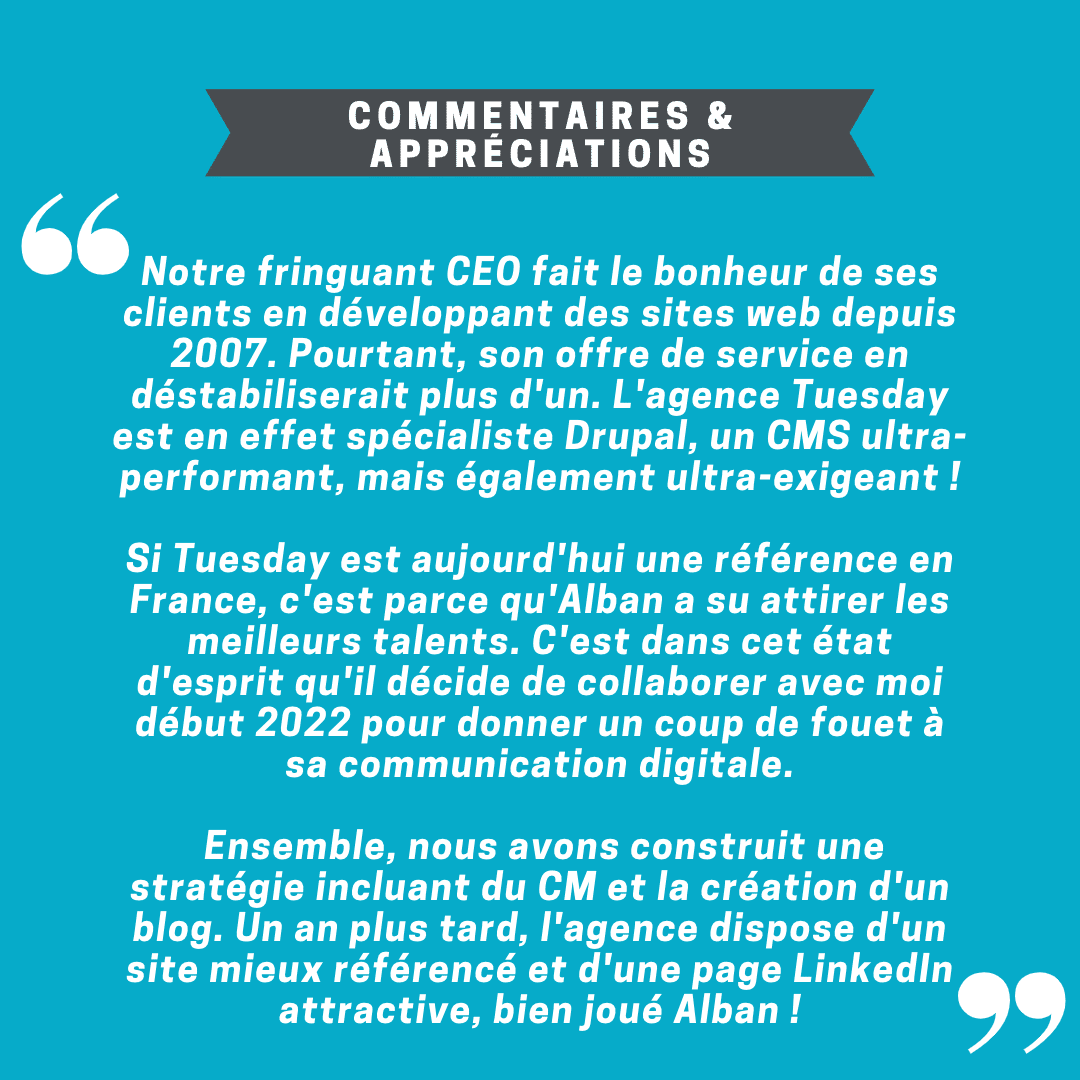 Adepte de l’inbound marketing, il préfère travailler sur le temps long, semer des graines et les voir pousser, plutôt qu’employer les méthodes de l’agriculture intensive. Il faut dire qu’il est attentif aux valeurs humaines et environnementales et affectionne travailler avec des entreprises à impact !