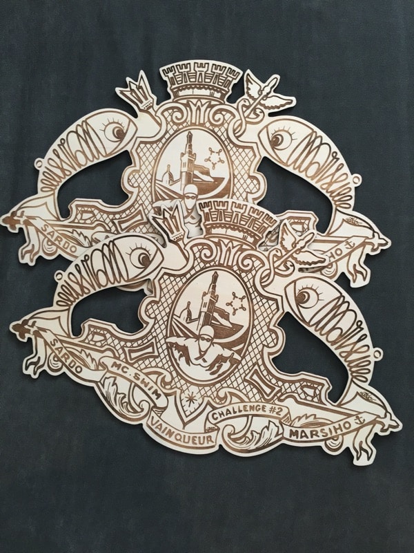 Réalisation de 2 plaques commémoratives (trophées) du MC swim challenge à la demande de l’artiste Sardo Marsilho