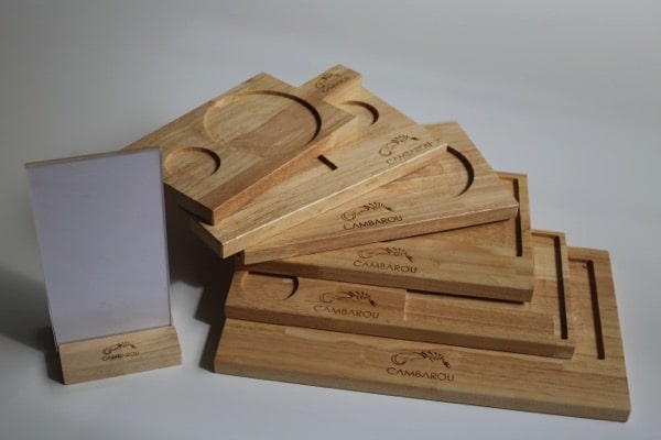 Production numérique et physique sur-mesure des prototypes ainsi qu’en série de 600 plateaux repas en différents formats, et de 50 socles de présentation des suggestions du jour pour le bar-restaurant novateur Cambarou