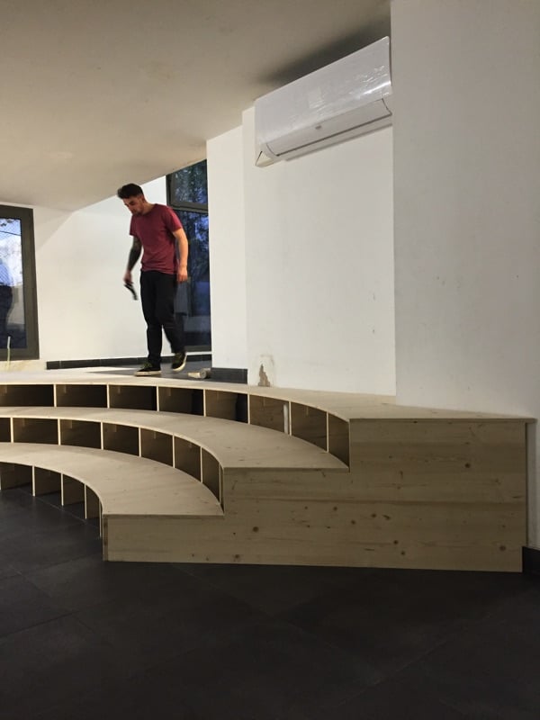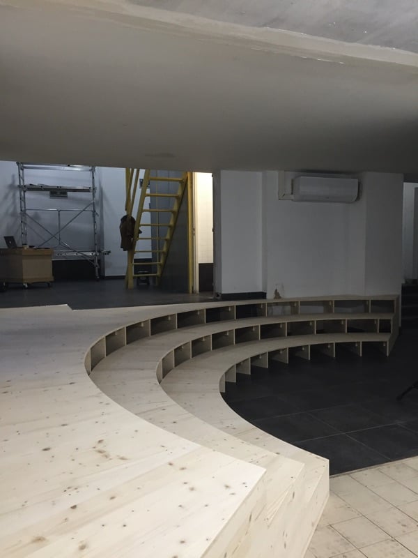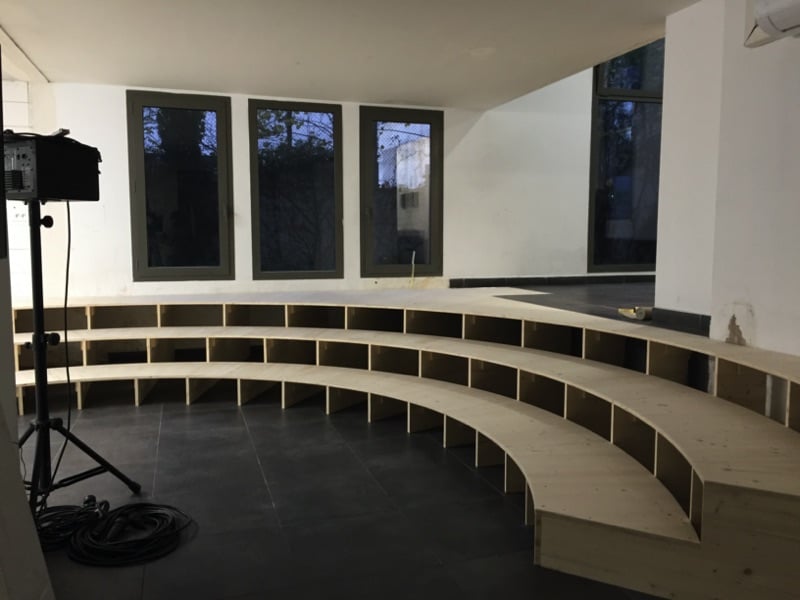 Réalisation d’une agora éphémère à partir de plans d’agencement d’étudiants, pour la biennale européenne de la création contemporaine Manifesta 13 Marseille.